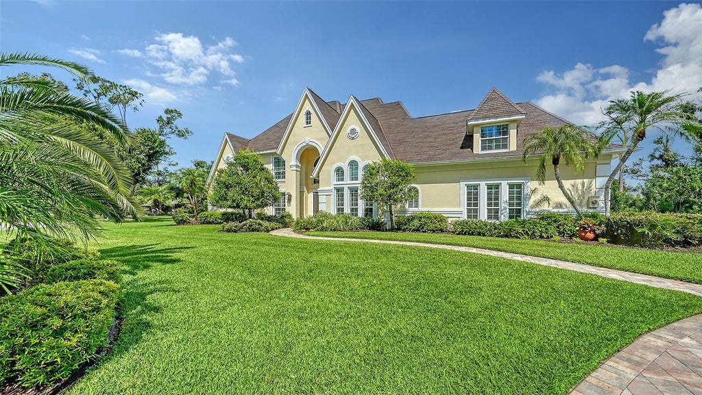MULTIPLE OFFERS... submit "highest and best" by Tuesday the 14th by 10:00 am. WOODLANDS OF BENT TREE… Tucked within the sought-after Woodlands of Bent Tree, one of Sarasota’s premier GATED communities. Elegant Tudor-style home, with a touch of Florida style, timeless character and exceptional privacy. Set on a sprawling, lushly landscaped homesite just under one ACRE, perfectly positioned on a quiet cul-de-sac. Custom-built POOL HOME with nearly 3,918 SQFT of living space, potential 6 bedrooms, or 4 plus bonus and 2 offices, or music room… so many choices. IMPACT WINDOWS AND DOORS (excluding front doors and garage side door) and ROOF REPLACED in 2018. Grand two-story foyer, formal front staircase and secondary back staircase, soaring ceilings, rich wood flooring, and detailed crown and picture frame molding. Family room with a wood-burning fireplace flanked by a built-in bookcase and two sets of French doors leading to the expansive screened lanai. Well-appointed kitchen features solid wood cabinetry, granite countertops, tile backsplash, Thermador 5-burner gas cooktop with downdraft ventilation, KitchenAid built-in wall oven and microwave, plus a Newair dual-zone wine fridge and walk-in pantry. Charming breakfast nook with bay window overlooks the serene pool area, the formal dining room boasts a stunning 15-foot cathedral ceiling. FIRST-FLOOR PRIMARY SUITE with French doors to the lanai, two walk-in closets, and a spacious ensuite bath featuring split vanities, soaking tub, walk-in shower, and private water closet. Flexible formal living room or office, or music room. Also, two half baths and a large laundry room with a second-floor laundry chute complete the main level. Upstairs, five additional bedrooms (or 4BDR and bonus room) and two full baths provide endless flexibility for family, guests, media room, or a second office. Outdoor living is a dream with a GAS-HEATED POOL resurfaced with new tile in 2019, spacious stone paver lanai and patio, outdoor shower, and a generous 4backyard with well irrigation. Surrounded by private and peaceful preserve views with a wonderful yard for the family plan! 2-car side-entry garage, long stone paver driveway and walkway, excellent curb appeal and propane for cooking and pool heating. Residents of Bent Tree enjoy a vibrant, close-knit community with events year-round, A-rated schools within walking/biking distance, and access to nature’s beauty through spring-fed lakes and preserved landscapes. Conveniently located near Bent Tree and Laurel Oak Country Clubs, Twin Lakes Sports Park, UTC Mall, downtown Sarasota, and top-rated beaches.